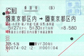 ![]() | 2025年5月27日 東京都区内→東京都区内 |