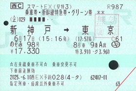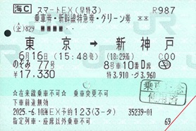 ![]() | 2025年6月16日 のぞみ77号 東京→新神戸 |